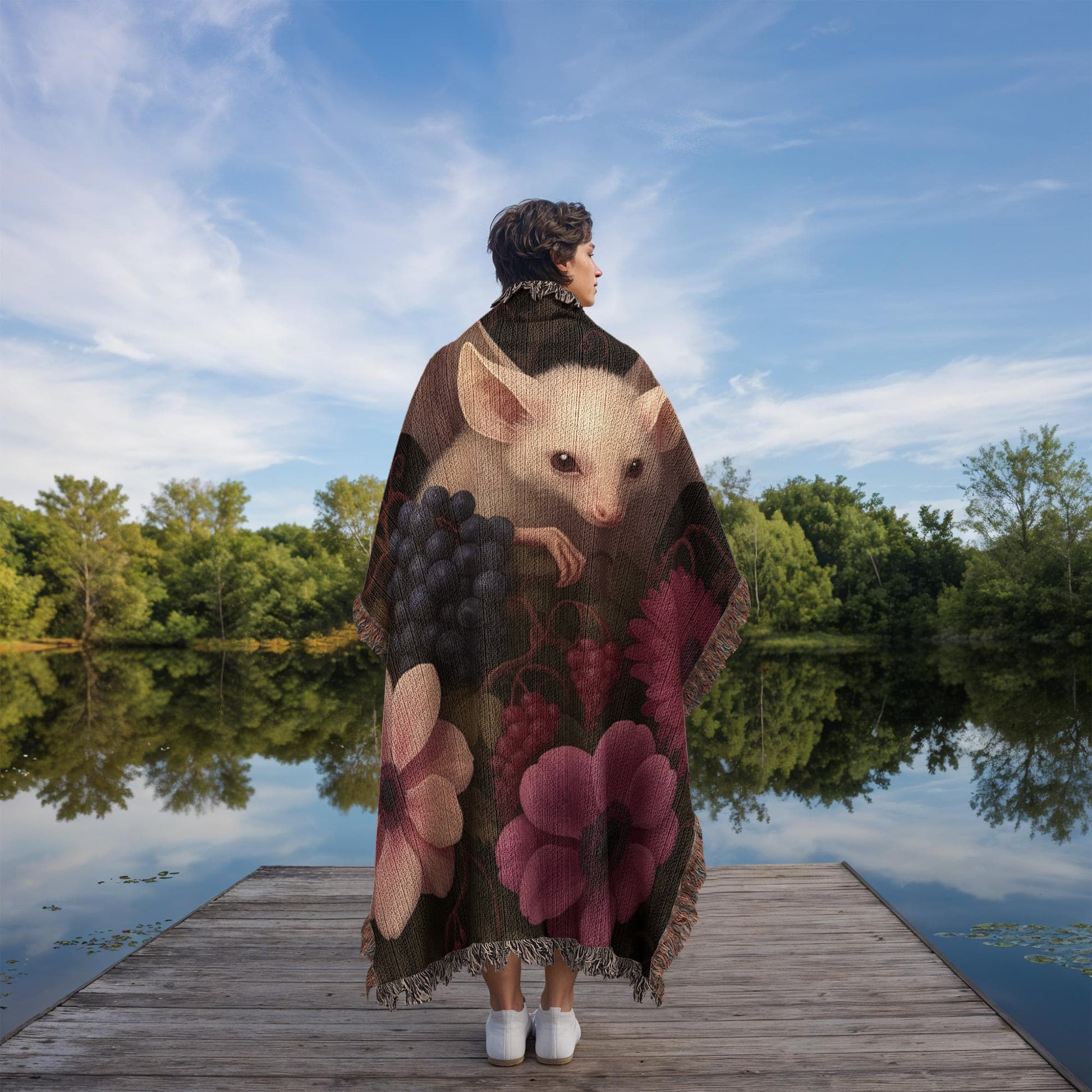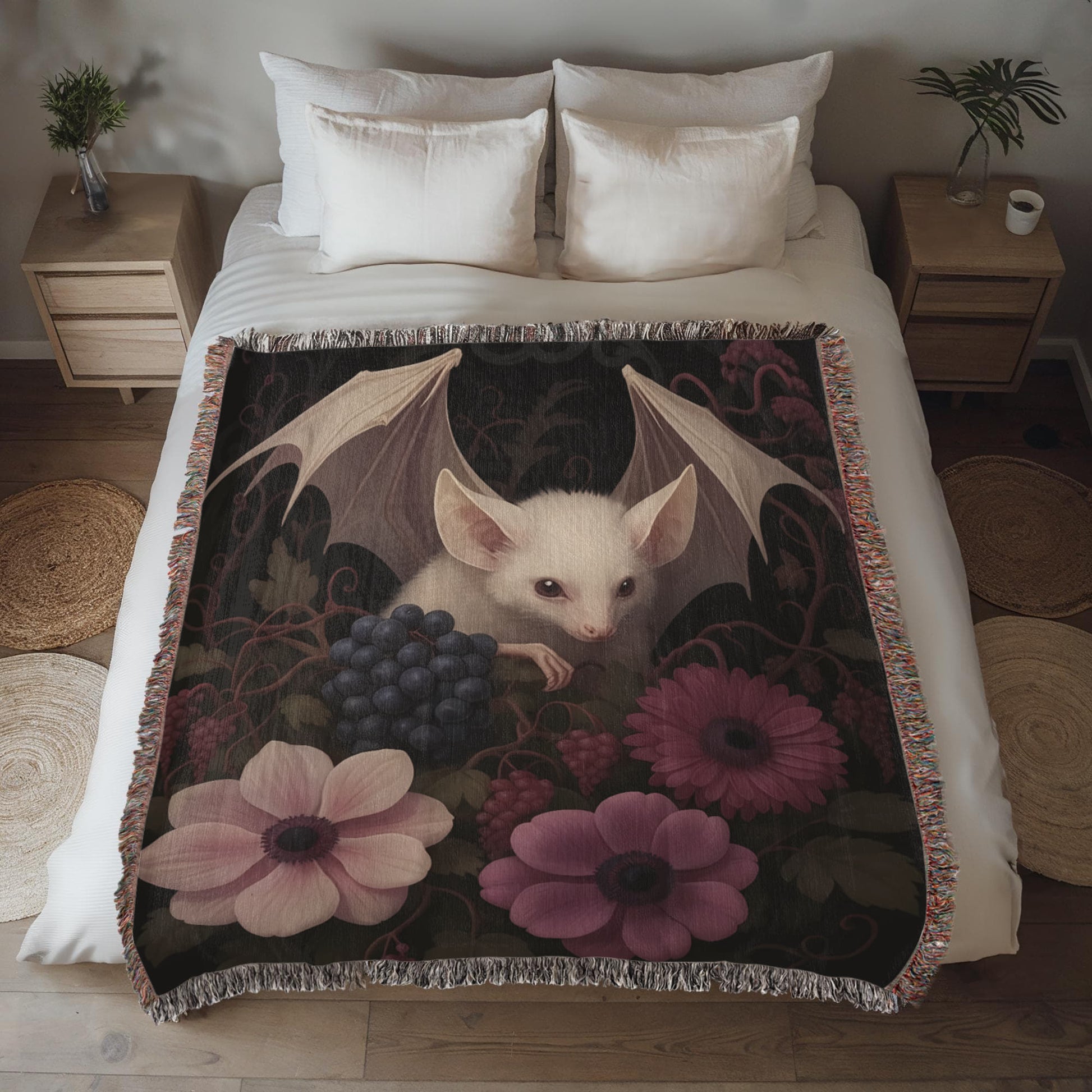 100% Cotton Woven Blanket – Bat Resting in Blooming Flowers